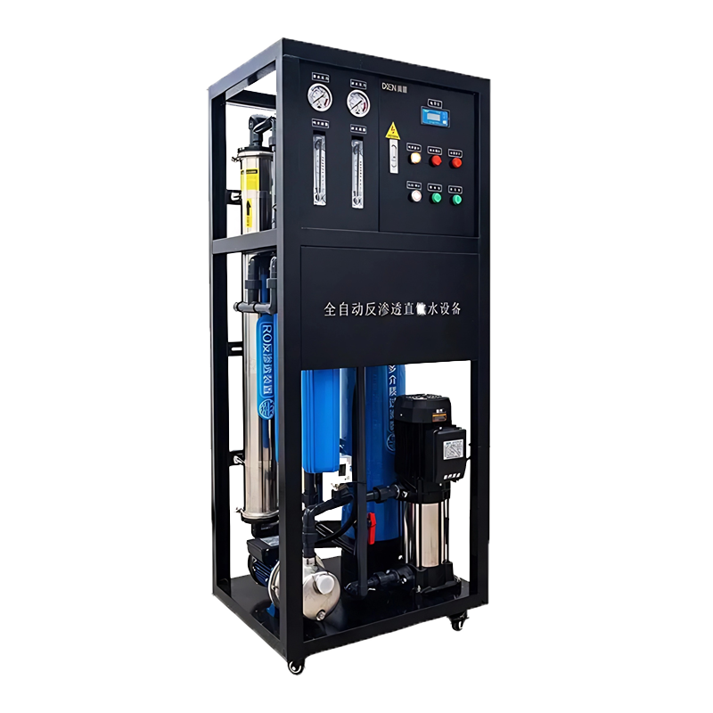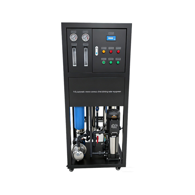 The equipment is equipped with a four-stage filtration system: multimedia filtration + activated carbon filtration + security filtration + core RO reverse osmosis. The multimedia filter efficiently removes suspended solids and sediment; the activated carbon filter has an adsorption rate of more than 90% for residual chlorine and peculiar smell; the security filter intercepts impurities larger than 5 microns; the core reverse osmosis membrane has a single desalination rate of ≥99%, removing more than 97% of dissolved solids, more than 99% of colloidal organics and almost 100% of bacteria in water, producing high-quality drinking pure water.